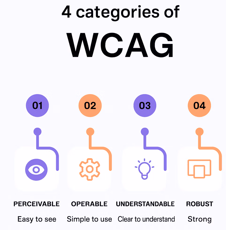 Perceivable – Users must be able to perceive the content (e.g., text alternatives for images).